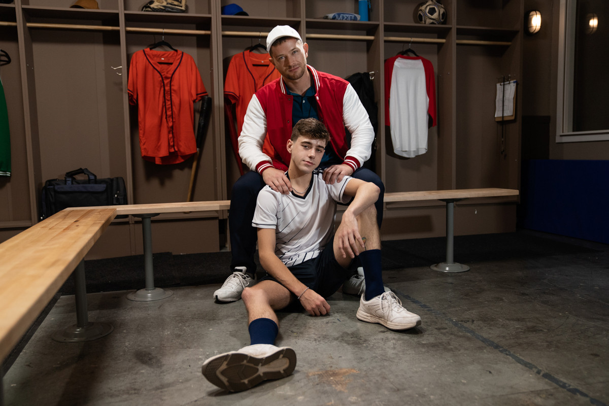 Men.com präsentiert Cocky Coach mit Johnny Donovan als Coach Deacon an der Seite von Joey Mills, Drake Von, Damian Night, Alphia Wolfe, und Daniel Lebang. In dieser Umkleidekabinen-Fantasie kommt Trainer Donovan seinem fleißigen Athleten ganz nah - er gibt ihnen praktische Trainingseinheiten, bewundert verschwitzte Körper und befriedigt seinen eigenen geheimen Kinks. Er gibt Tipps für die richtige Haltung, stiehlt einen Hauch Schweiß und lässt sich von einem Ringer anmachen: dieser Trainer weiß, wie man die Kontrolle übernimmt - im und neben dem Ring.