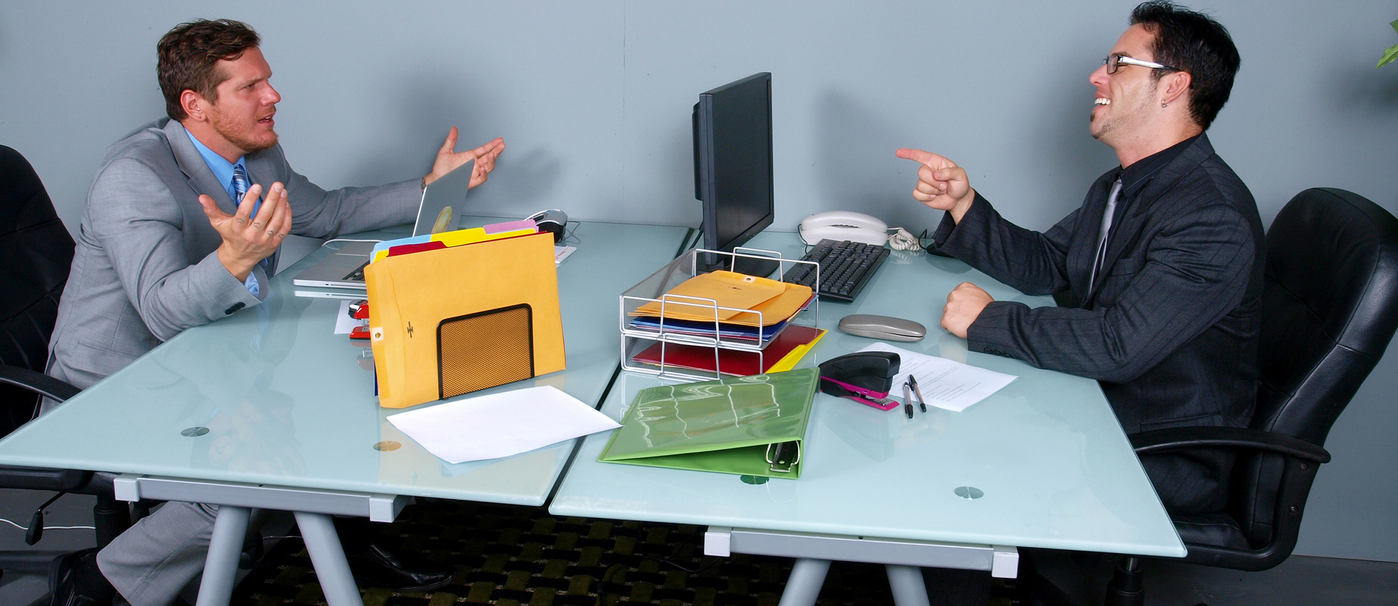 Willkommen, meine Herren. In diesem Büro werden alle Diskussionen und Verhandlungen in einer sehr... aktiven Art und Weise geführt, und es kommt niemand zu Schaden.