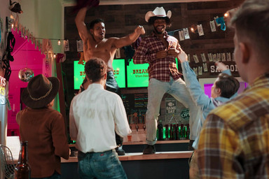 These cowboys are professional horsemen, but once they dismount, they have other, very different mounts to ride.