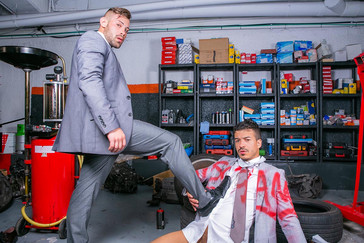 In Business Volume 4, a nervous businessman has a sex session with his personal chauffeur. After the lockdown is lifted, two colleagues discover how much they've missed sex. A new club patron finds himself with adapted, crude sex games. Two lawyers engage in late-night office sex games. A car dealership falls for a mafia employee's scam.