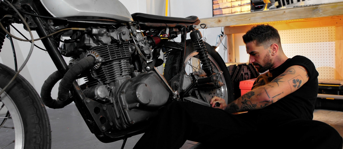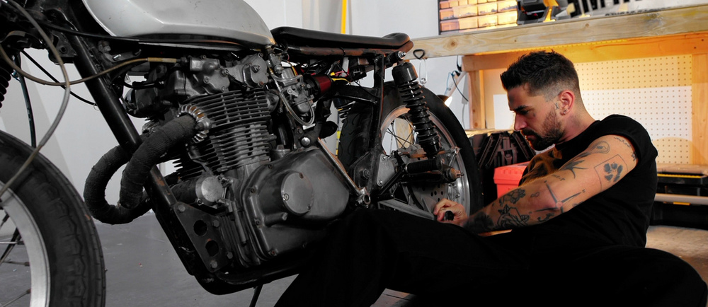 Chris Damned, a man of many tattoos, loves his bike, but he can't get his boyfriend Jim Fit interested, until Chris shows him how strong the handlebars can be for fucking...