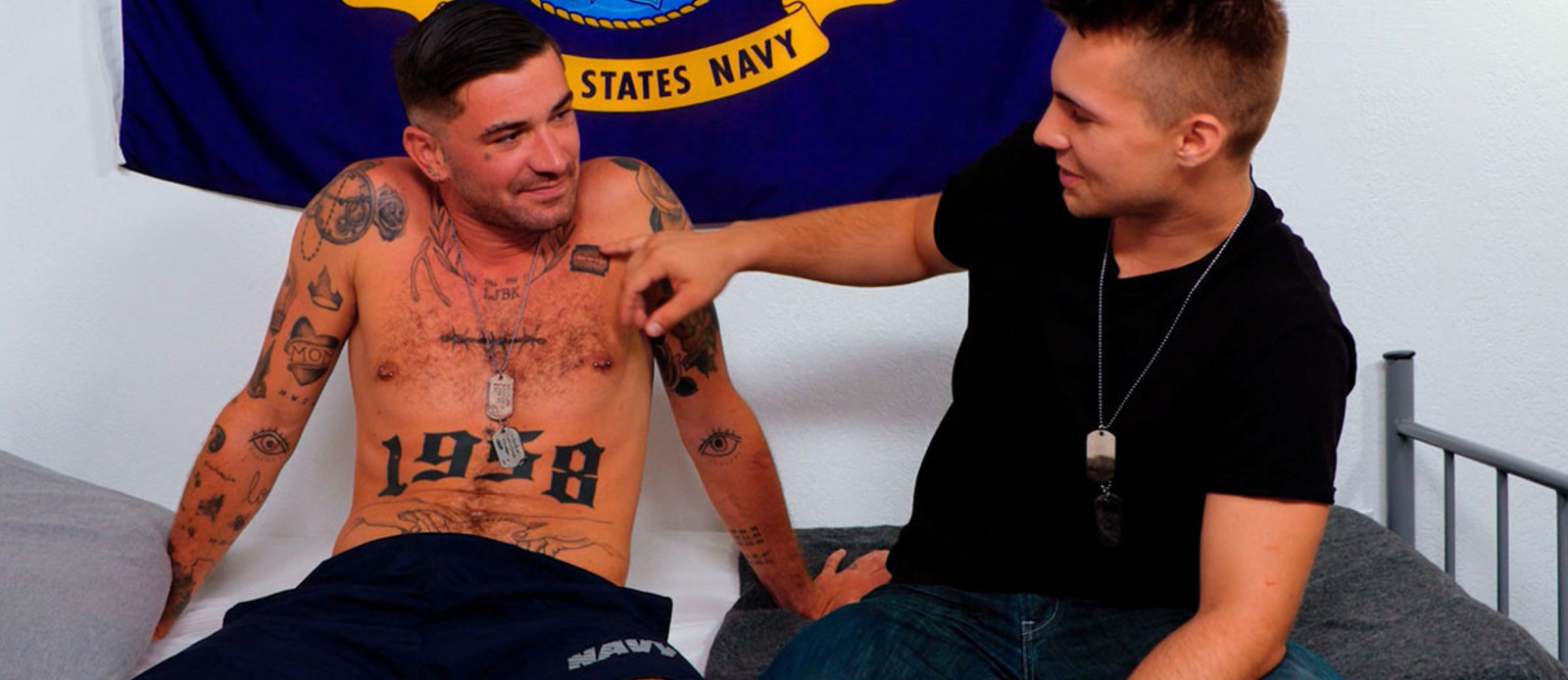 Alex James et Niko Carr dans une scène bien chaude. Le sexy et tatoué Chris est attiré par le timide Merrill, et il s'assure que le nouveau soldat sait à quel point il sait prendre du plaisir…