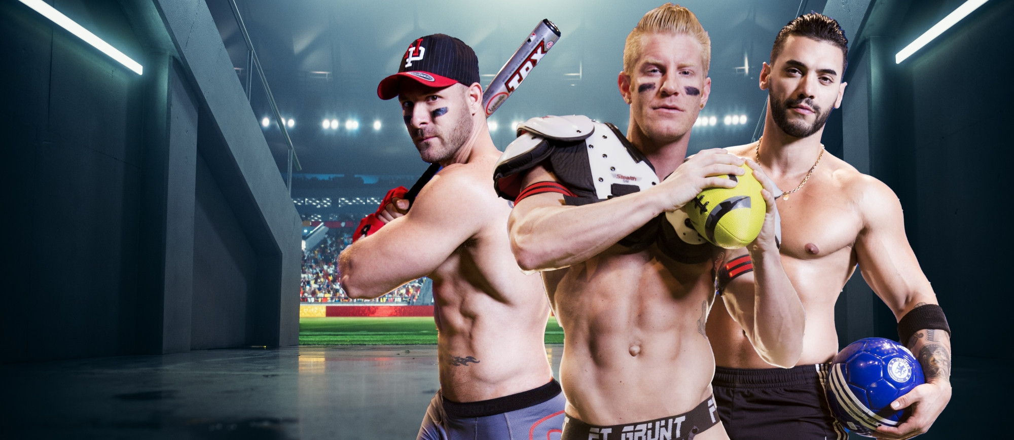 Neuf sportifs excités prêts à jouer, sur le terrain et en dehors !